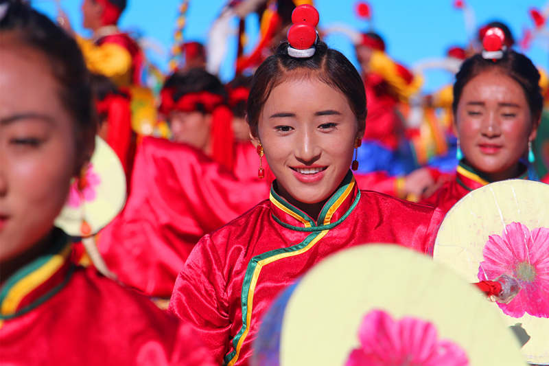 “藏博会”上,表演“热巴”的康巴姑娘。