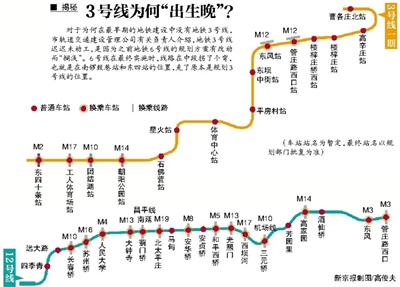 新京报讯 (记者郭超)北京地铁有1号线、2号线、4号线、5号线……这么多年却不见3号线。昨天传来地铁3号线最新消息,3号线一期将于年内开工,预计2020年建成。