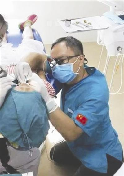 一张医生跪在地上为患者做牙科手术的照片在网络流传开来