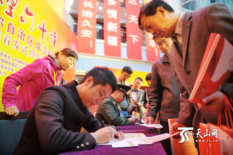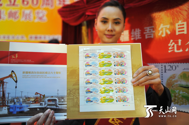 10月1日上午,《新疆维吾尔自治区成立六十周年》纪念邮票首发式暨集邮展览开幕式在乌鲁木齐举行。