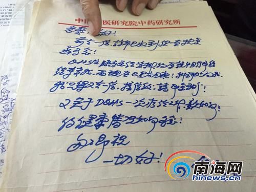 直到现在,蔡贤铮依然保存着与屠呦呦之间的交往信件。那是一叠足有十几页的信纸。信件的开头写着“老蔡”。屠呦呦在信件中希望蔡贤铮,帮助她在“琼中、三亚、东方、乐东”等地,完成还原青蒿素、青蒿琥酯等药的疗效观察。