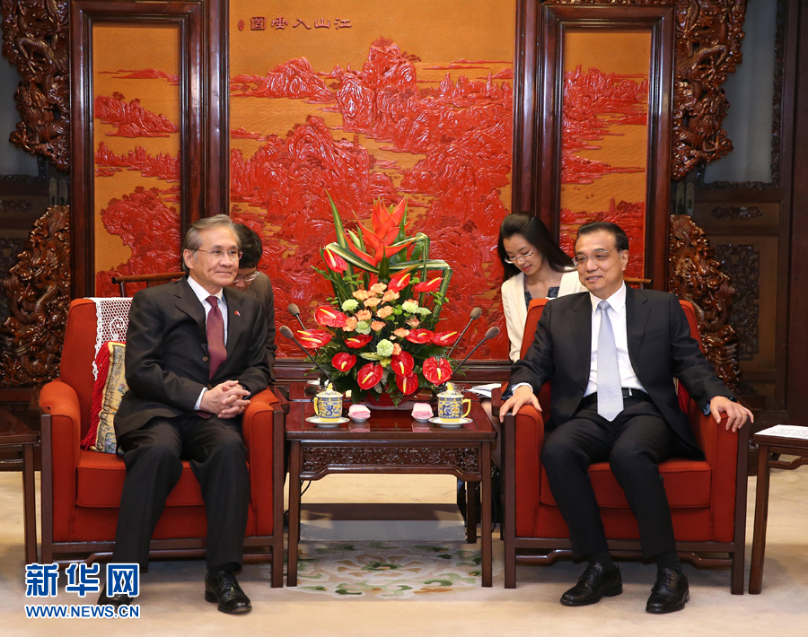 10月9日,国务院总理李克强在北京中南海紫光阁会见泰国外长敦·巴穆威奈。 新华社记者 庞兴雷 摄