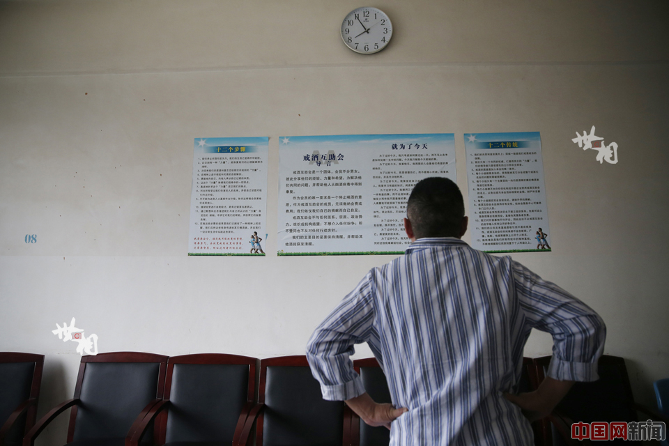 一位正在接收治疗的戒酒者正在查看AA戒酒互助会的介绍。AA是Alcoholic Anonymous简称,即嗜酒者互诫协会,又名匿名戒酒会。嗜酒互诫协会从美国引入我国,主要通过举办现场会和网络会形式,使嗜酒者成员能相互交流经验,互相支持鼓励,从酒精依赖中解脱出来,重新过正常的生活。