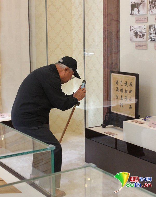 正在参观的老人,认真地拍下文物。中国青年网见习记者 开可 摄