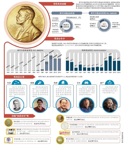 5日,中国女药学家屠呦呦获得2015年诺贝尔生理学或医学奖,再度引起外界对诺贝尔奖的关注。目前诺贝尔奖单项奖金已经高达800万瑞典克朗,相当于600多万元人民币。根据去年情况,屠呦呦可分享300万奖金,对此屠呦呦笑称不足够买北京的半个客厅。诺贝尔奖奖金到底是多是少?