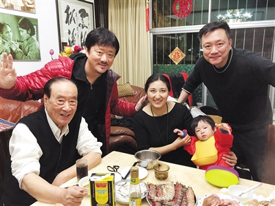 晚年庞学勤和庞好(红衣者)一家、庞越在一起。