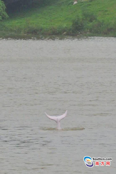 广东佛山现中华白海豚 疑被台风卷入河道