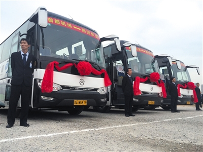 昨天,首批投入运营的燕郊到首都机场巴士在场站准备“上岗”。当天,燕郊结束没有直达首都机场巴士的历史。