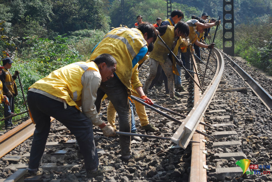 10月15日,该段职工在川黔线久长至新萝村区间358公里加500米处,进行更换长轨作业。