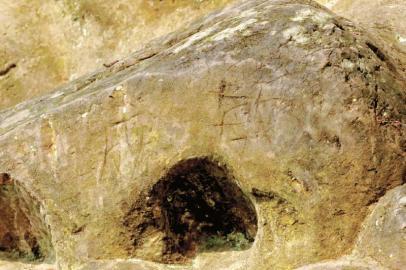 记者走进一看,石狮通身斜纹,偏红的砂岩,局部泛着青色。皱着的眉头、鼓起的“二筒”、花边状的嘴唇……圆滚滚的石狮子尽管“养在深山人未识”,但仍难逃不文明之手,在鼻孔上方,记者发现了“成敏”二字的刻痕,从沟壑来看,这两个字已经存在多时。