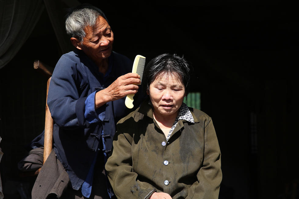 不幸在11年前再次发生,一场车祸导致徐必球高位截瘫,双腿不得动弹。从此,独腿的盛秉植开始像当年妻子照顾他那样去照顾她。徐必球说:“假如没有他,我不可能活到今天。”