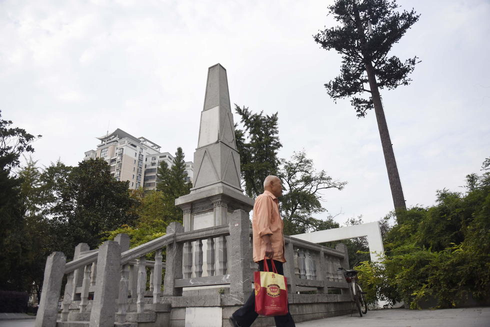 合肥一烈士纪念塔遭泼漆碑体满是伤痕