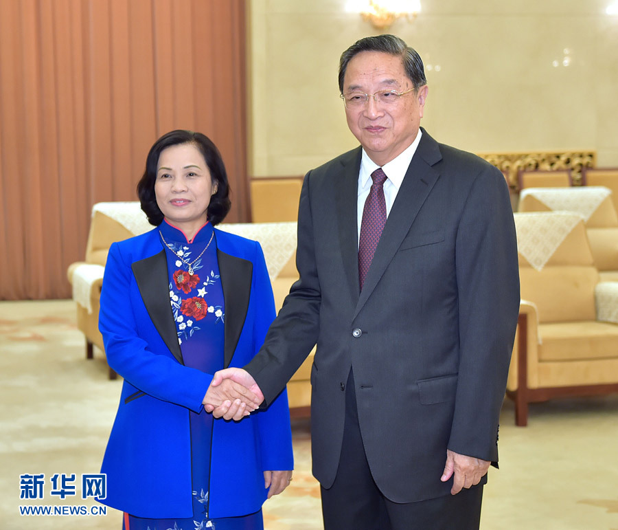 俞正声会见越南祖国阵线中央委员会副主席裴氏清