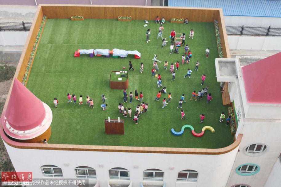 2015年10月20日,陕西省西安市西影路一幼儿园建屋顶操场,孩子们上房顶嬉戏玩耍。
