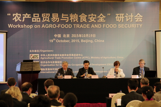 本网讯 10月19日,农业部农业贸易促进中心、经济合作与发展组织(OECD)和国际贸易和可持续发展中心(ICTSD)在北京共同举办了“2015年农业贸易政策国际会议”。此次会议针对“开放条件下如何保障粮食安全”问题,以“农产品贸易与粮食安全”为主题,就粮食安全面临的挑战、贸易对粮食安全的潜在影响、农业生产力可持续增长与粮食安全以及相关政策启示共四个议题进行了深入讨论。