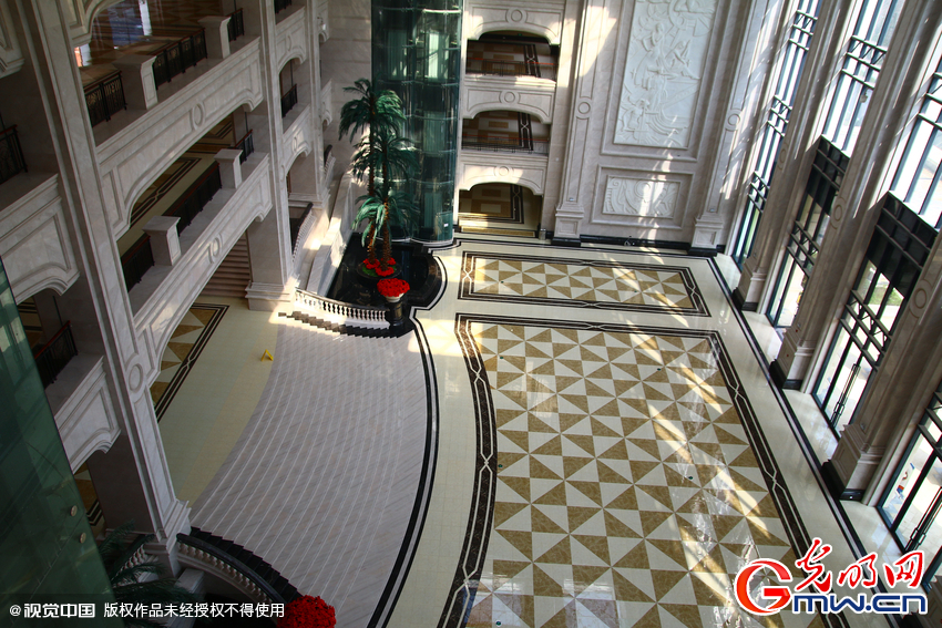 昨日下午,记者来到该学校,还没走到大门口,就能看到好几栋显眼的欧式建筑,部分正在施工。记者首先来到综合楼(教学楼),走进大厅,便被它的气势所震撼。学校相关工作人员告诉记者,大厅足有5层楼高,共27米。