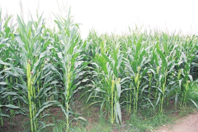 宁津县杜集镇采用常林集团提供的新农机、新农艺融合配套方案种植的玉米(左)与传统种植(右)效果对比