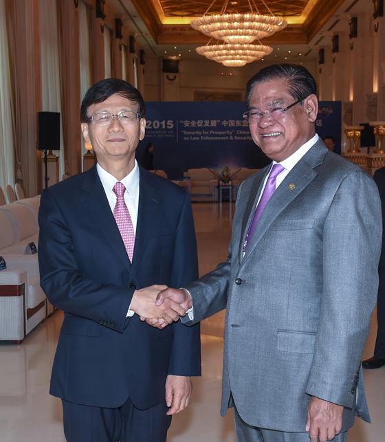 10月23日,中共中央政治局委员、中央政法委书记孟建柱在北京会见柬埔寨副首相兼内政大臣韶肯。