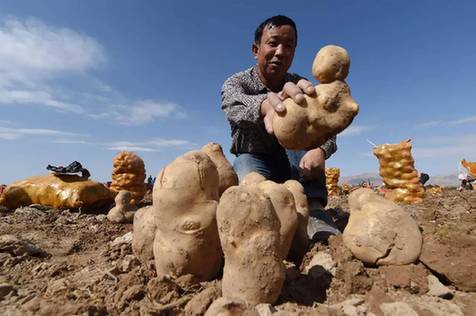 2015年9月24日,在甘肃山丹县位奇镇高寨村一种植大户流转种植基地,工作人员在挑选马铃薯。 新华社记者 范培珅 摄