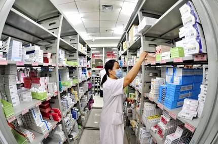 2015年5月31日,河北省沧州市中心医院工作人员在药房内为患者取药。新华社记者 牟宇 摄
