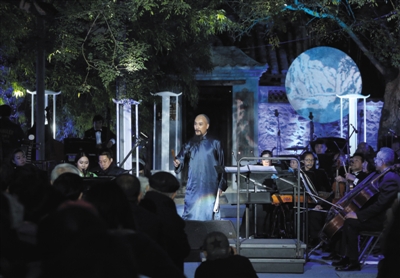 昨日,北京植物园,《红楼梦音乐传奇》正在上演,“曹雪芹”正在吟诗。