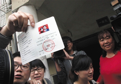 2014年4月11日,江苏省南京市,沈女士的家人展示刚领到的南京首张“单独二孩”生育证。图/CFP