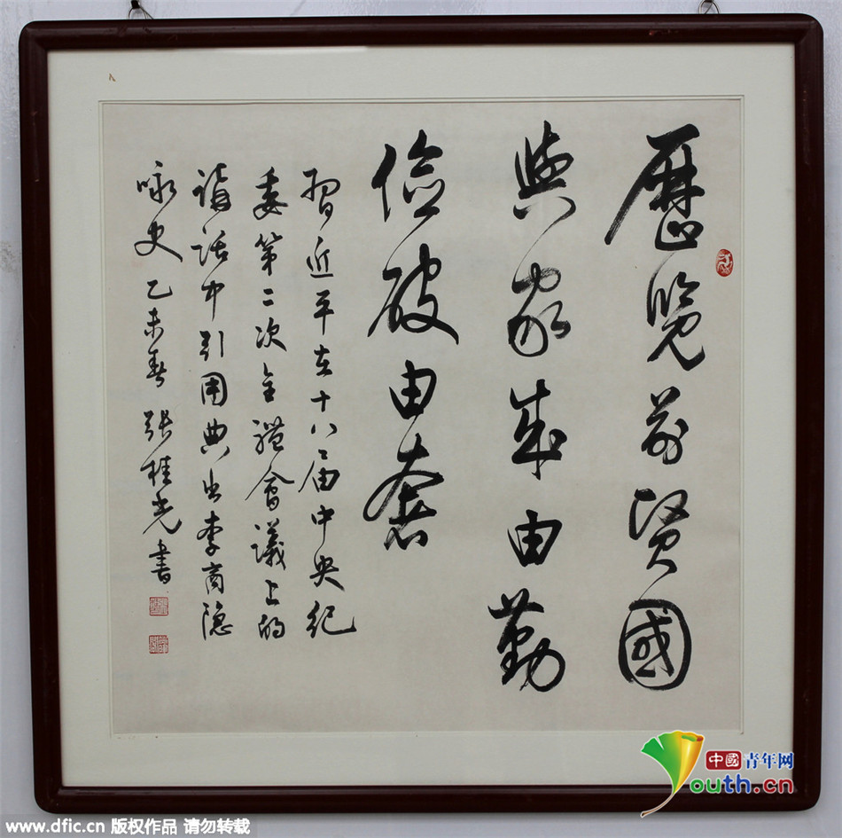 2015年10月30日,湖北武汉,“习近平用典”全国名家书法特别展在武汉经济技术开发区市民服务中心展出。古典名句,是历史长河中历经砥砺的智慧结晶,是传承中华民族优秀传统文化的经典载体。本次展览,邀请全国百余位书法名家,书写习近平总书记系列重要讲话和文章中引用的经典名句,内容涉及到敬民、为政、立德、修身、劝学、廉政等诸多方面,主题鲜明,饱含深情,既让人感悟中华传统文化的博大精深,又能领略习近平总书记的独特语言风格和人格魅力,是一次“笔墨当随时代”的艺术践行。