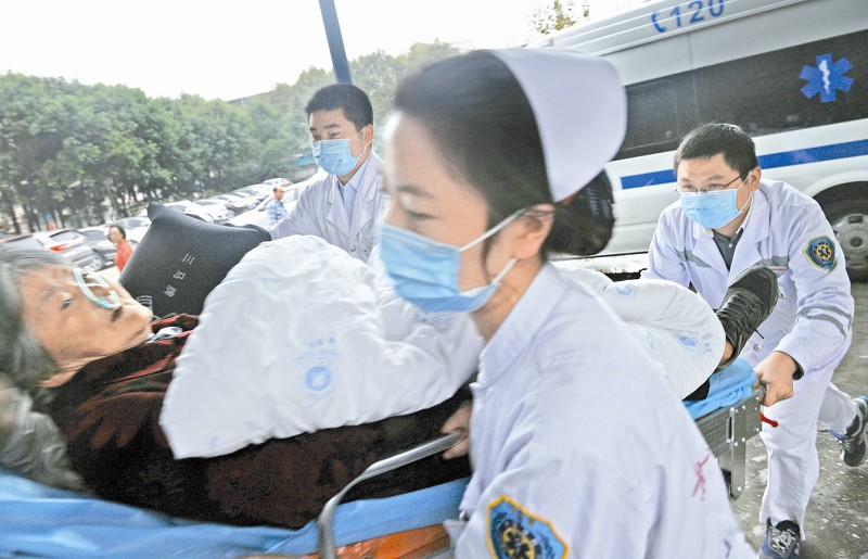“快!快!请大家让一让,有急诊病人!”10月31日,在成都大学附属医院急诊抢救区,120急救车刚一停稳,男护士熊健和陈诚动作飞快,将患者抬下送进距离40多米的急诊抢救室。