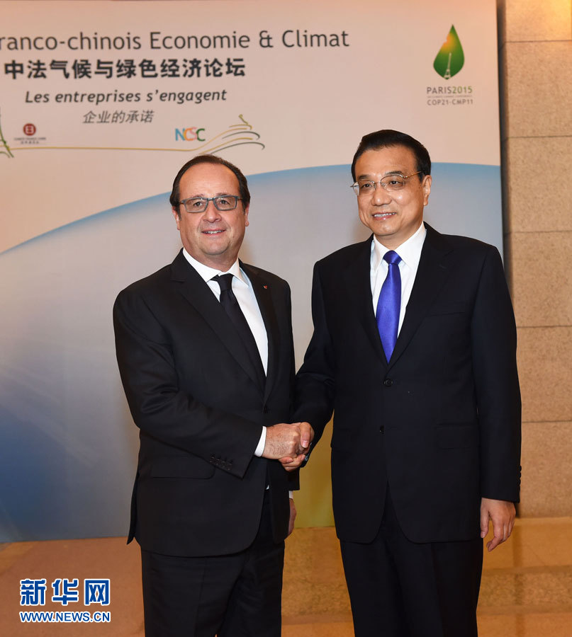李克强与奥朗德共同出席中法气候与绿色经济论坛