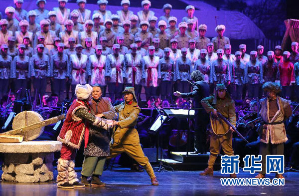 11月4日,作为第八届“春华秋实——艺术院校舞台艺术精品展演周”参演剧目,沈阳音乐学院复排改编的“革命人永远是年轻——《星星之火》主题音乐清唱剧”亮相北京国家大剧院。歌剧《星星之火》是新中国第一部反映东北抗联题材的歌剧,1950年在哈尔滨首演。这是演出现场。新华社记者 殷刚 摄
