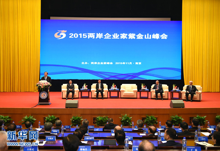 11月3日至4日,由两岸企业家峰会主办的2015年两岸企业家紫金山峰会在江苏南京举行。中共中央政治局常委、全国政协主席俞正声出席并致辞。新华社记者高洁摄