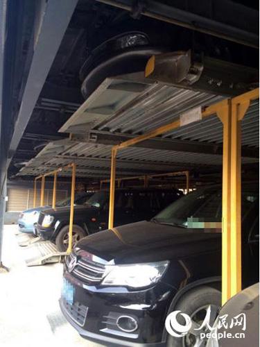 有管理员专门负责操作的立体车库情况要好很多。朝阳区十里堡某小区的立体车库,一二层几乎停满了小汽车。(人民网 刘融摄)