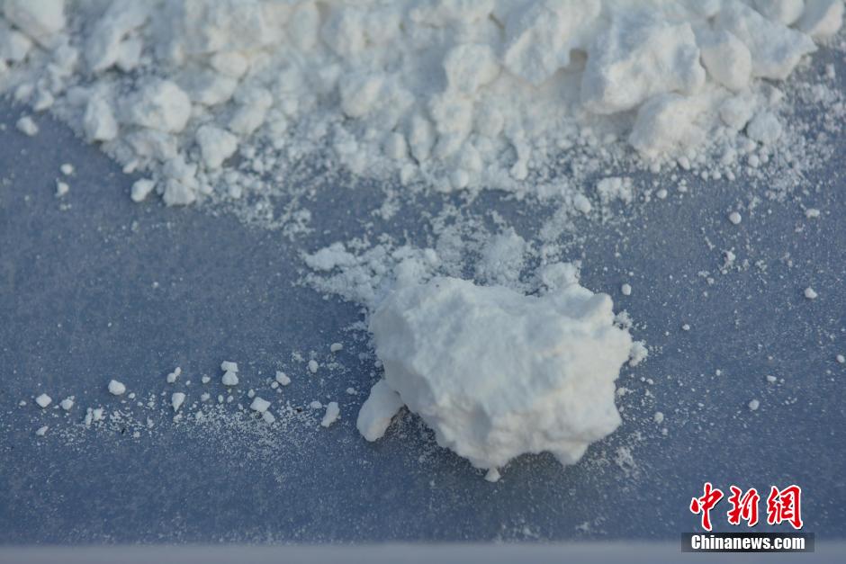 广西钦州警方11月5日通报,一家隐藏在钦州市灵山县檀圩镇沙井村的特大制毒窝点被端,警方现场查获疑似冰毒成品172.8公斤,半成品24.7公斤,原材料约800公斤,以及制毒设备、工具一批,缴获冰毒价值人民币600万元。该制毒窝点的成员主要以当地村民为主,而一名制毒师傅是由村民出资从广东聘请。图为现场查获的毒品。覃庆煜 摄