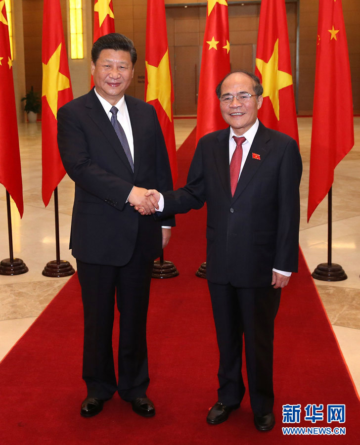 11月6日,中共中央总书记、国家主席习近平在河内会见越南国会主席阮生雄。 新华社记者 庞兴雷 摄