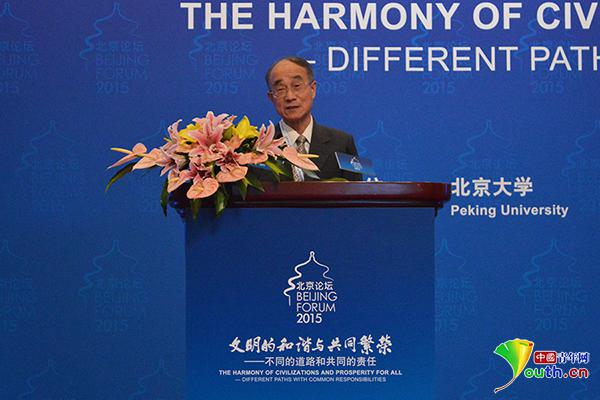 北京大学历史系教授、著名历史学家钱乘旦在北京论坛(2015)开幕式上作主旨演讲。中国青年网记者 杜美辰 摄