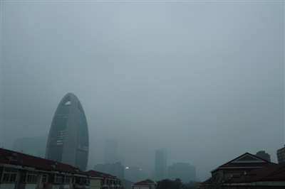 昨日,北京再度遭遇雾霾天气,7时许,东三环附近建筑隐没在雾霾中。图/CFP