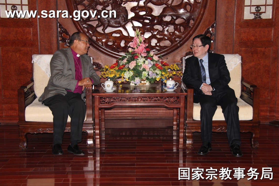 11月9日下午,王作安局长会见了香港圣公会教省主教长邝保罗率领的访问团一行。