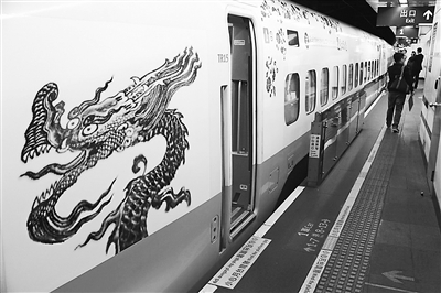 为迎接位于嘉义市的台北故宫南院今年底落成,台湾高铁公司与台北故宫首度携手合作,推出“遇见故宫南院”高铁彩绘列车,10日中午12时自台北车站首发。这趟彩绘列车图案源自即将在南院展出的珍贵文物——明永乐年间“青花龙纹天球瓶”,旅客在车厢内外都可欣赏到优美的青花图样。