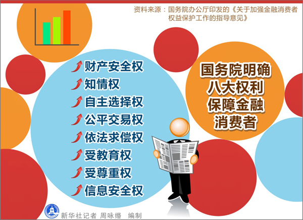 图表:国务院明确八大权利保障金融消费者 新华社记者 周咏缗 编制