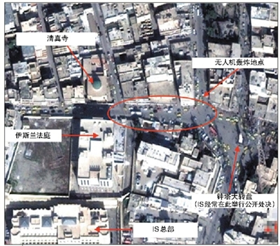 据社会组织“拉卡正在被静静屠杀”提供的卫星地图显示,无人机袭击地点在拉卡街道上,距离IS在叙总部很近。