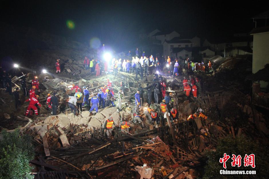 11月13日22时30分,浙江省丽水市莲都区雅溪镇里东村发生1起山体滑坡事故,山体滑坡一直延伸到里东高速边,近二十栋房屋被埋,险情发生后,丽水市区两级已启动地质灾害特别重大Ⅰ级响应预案。 中新社记者 刘治乾 摄