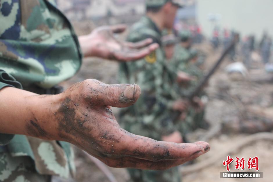 浙江丽水山体滑坡救援现场 徒手挖开生命通道