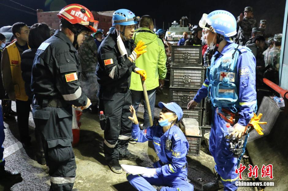 11月14日晚,浙江丽水莲都山体滑坡现场,虽已接近凌晨,但各个救援队仍整装待发,预备有序进入现场,轮班深夜救援。中新社记者 吴雨辰 摄