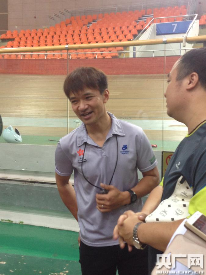 中国香港自行车队教练黄金宝表示,选择在广州大学城体育中心场馆作为训练基地的原因是这边的配套比香港好,离香港距离相对较近,冬天的时候很多自行车队伍都会选择来这里训练,有时候还要预约才能排上时间,场馆在亚运会之后起到了专业体育训练馆的作用。(央广网记者 何伟奇 摄)