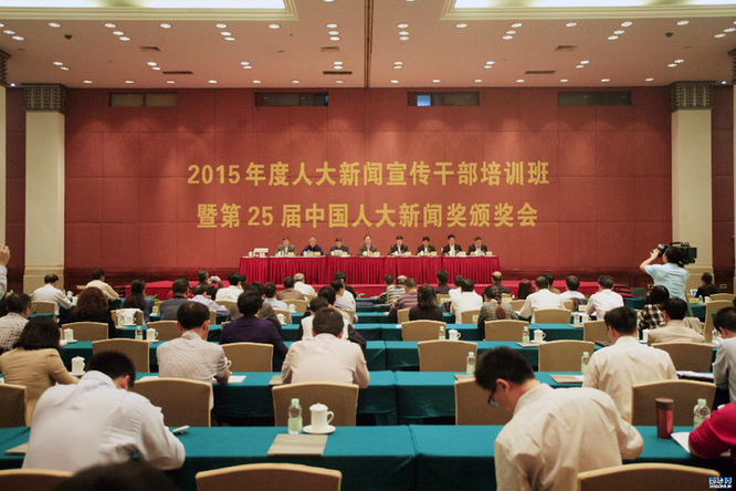 图为2015年度人大新闻宣传干部培训班暨第25届中国人大新闻奖颁奖会现场。