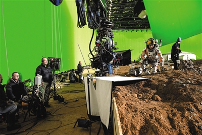 《火星救援》拍摄花絮照片,有些场景是在摄影棚中拍摄。