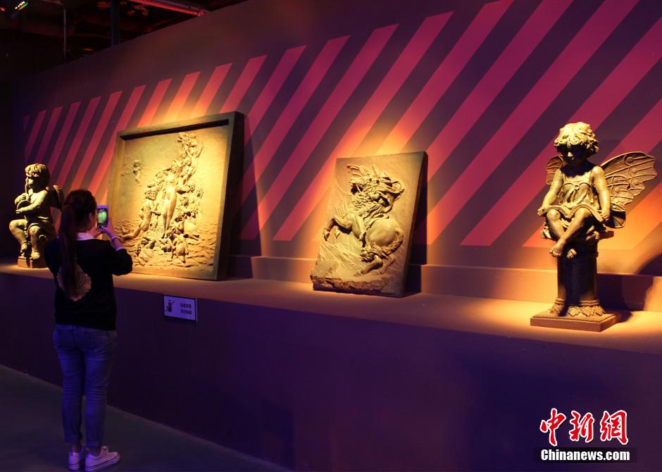 巧克力雕塑吸引市民拍照留念。 周毅 摄