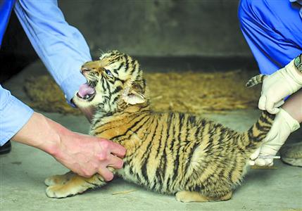 给小老虎量肛肠体温,有点难度,需要配合。