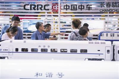 9月5日,长春,东北亚博览会,中国中车展位,展出高铁,动车,地铁,轻轨。图/CFP