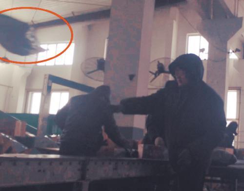 “宅急送”分拣车间内,包裹被飞来飞去